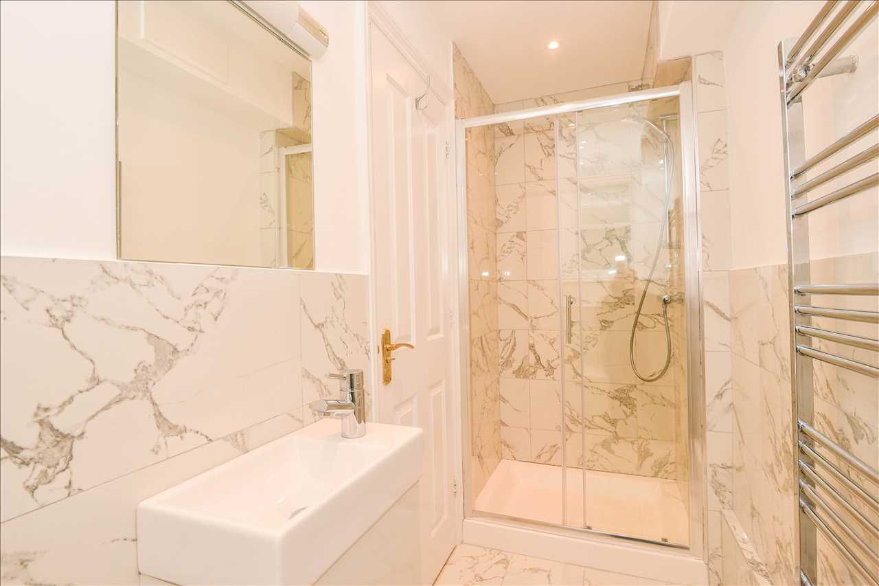 Fitted in white with chrome fittings and comprising large glazed shower cubicle, Basin with storage beneath. Close coupled flush WC. Auto extractor fan.